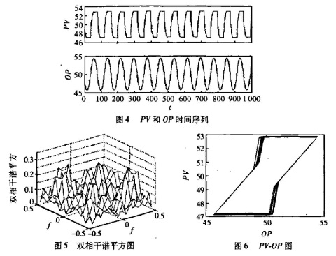 存在非線性閥的控制回路產(chǎn)生非高斯性和非線性時間序列。Choudhury在2003年,提出根據(jù)控制誤差信號(SP2PV)的非高斯性和非線性作為確定控制回路性能的方法。這種方法利用標準重譜或雙相干譜的靈敏度檢測信號的非線性。非線性時間序列的一個顯著特點是出現(xiàn)相位耦合,一個頻率下的相位需要由其它頻率的相位來決定。相位耦合時高階譜所具有的特性可以通過信號的雙相干譜檢測。