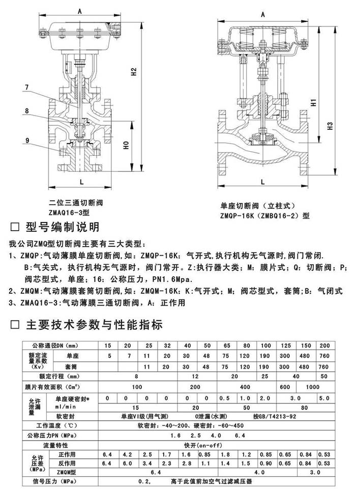 ZMQ高溫氣動薄膜切斷閥
