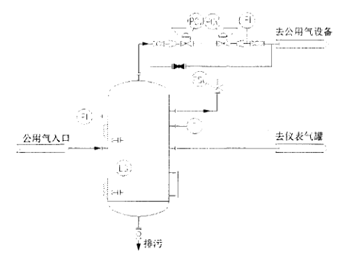 自力式調節(jié)閥在公用氣系統中的應用如圖2所示 ,為一個背壓閥和減壓閥的組合 ,其功能是將公用氣罐出來的公用氣穩(wěn)定在一個范圍內,海上平臺常取500~800 kPaG 。